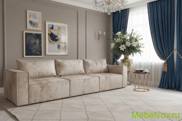 Диван еврокнижка Лофт Люкс-3 плюш бежевый МСК Новый