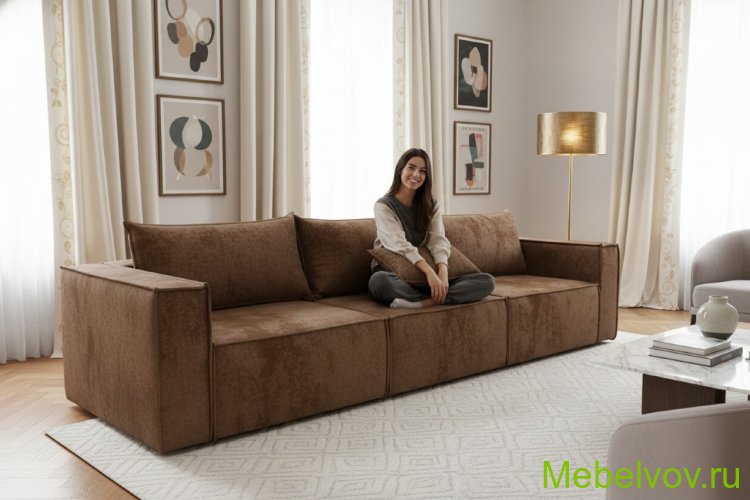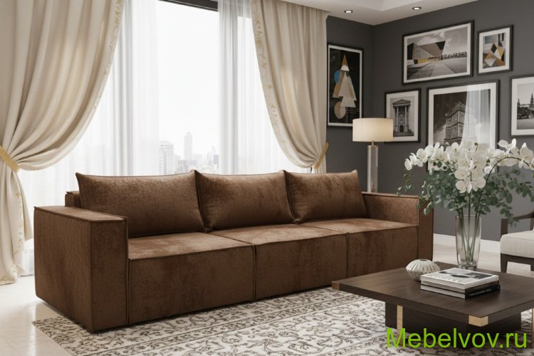 Диван еврокнижка Лофт Люкс-3 плюш коричневый МСК Новый