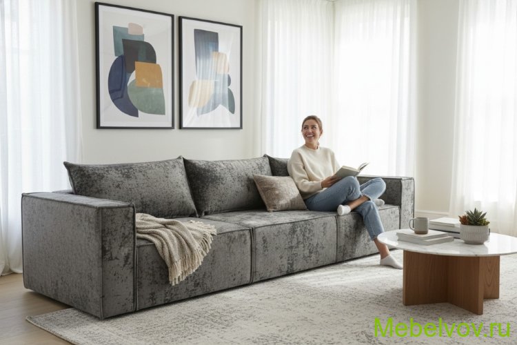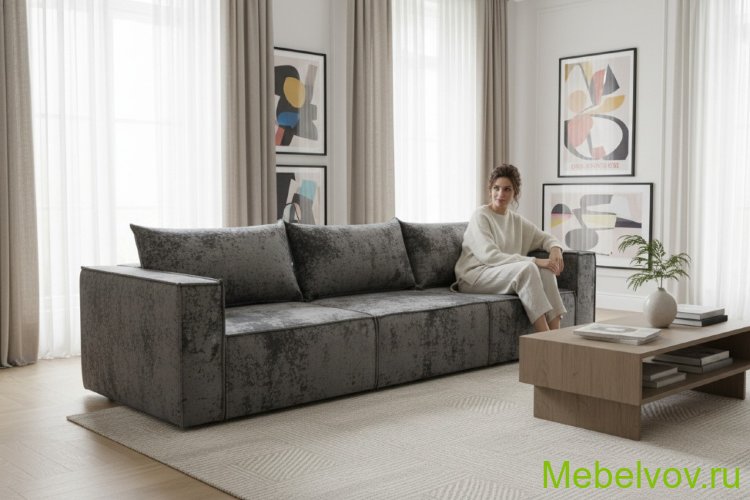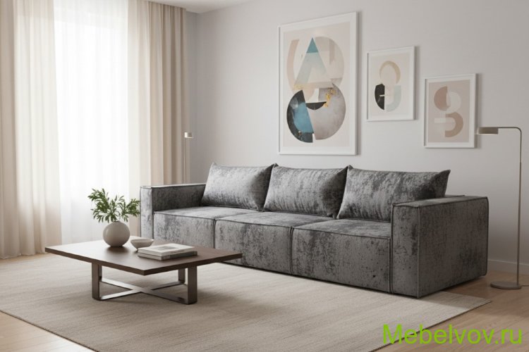 Диван еврокнижка Лофт Люкс-3 плюш серый МСК Новый