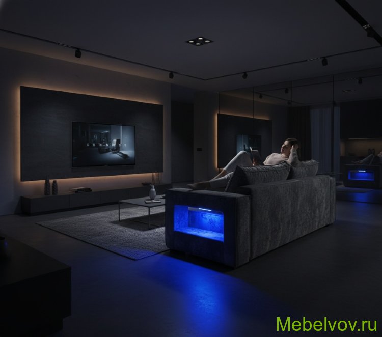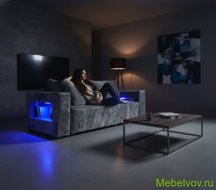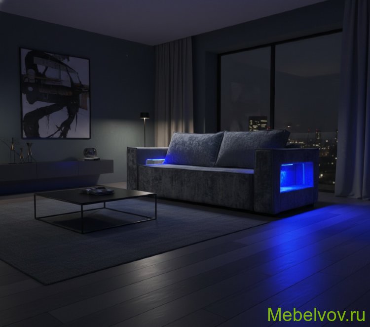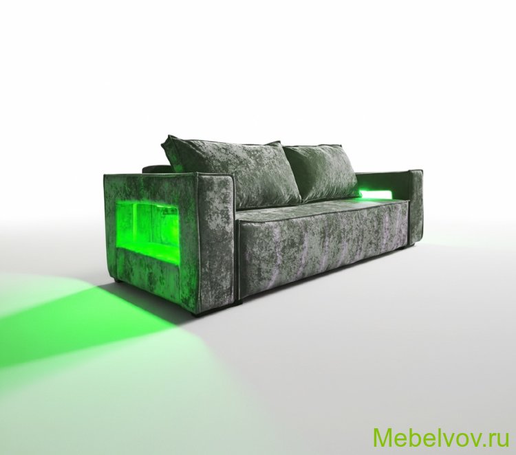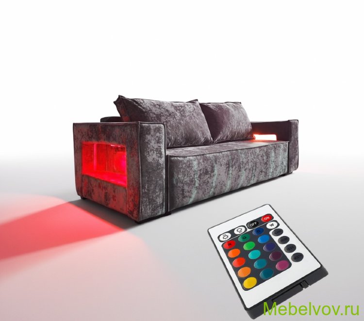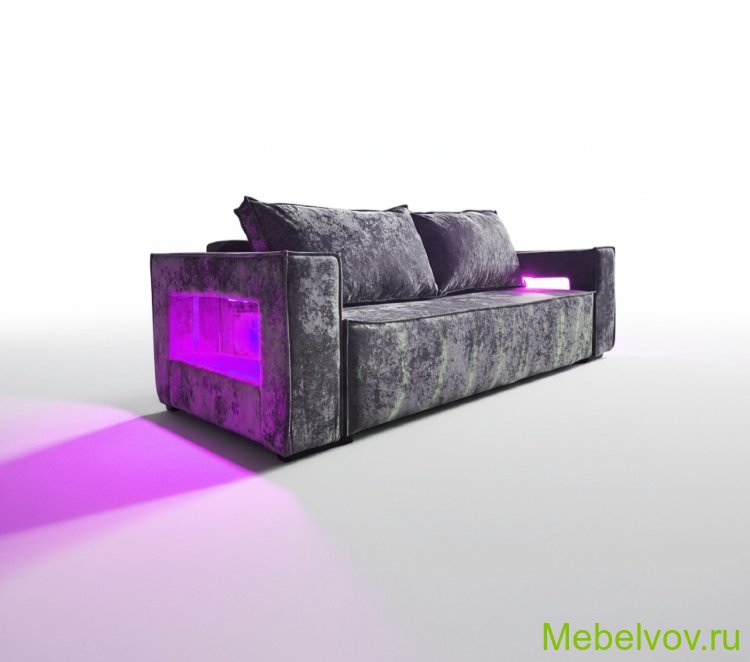 Диван-еврокнижка Лофт Люкс серый плюш с подсветкой