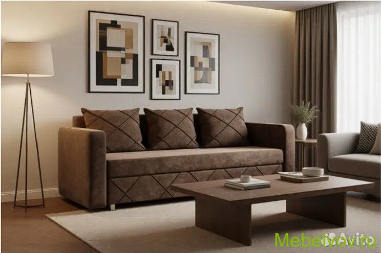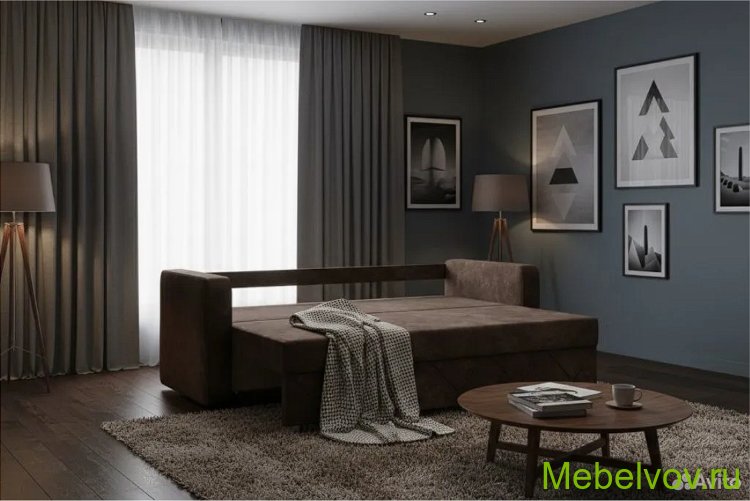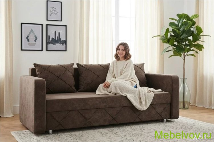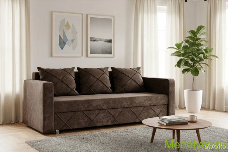 Диван-еврокнижка Стелла плюш коричневый МСК