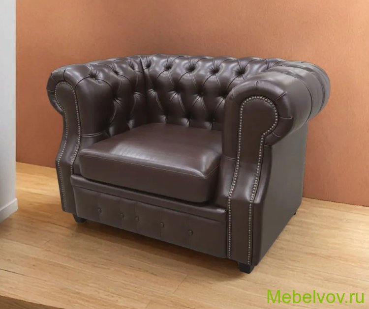 Кресло Честер Лофт кожзам коричневый новое